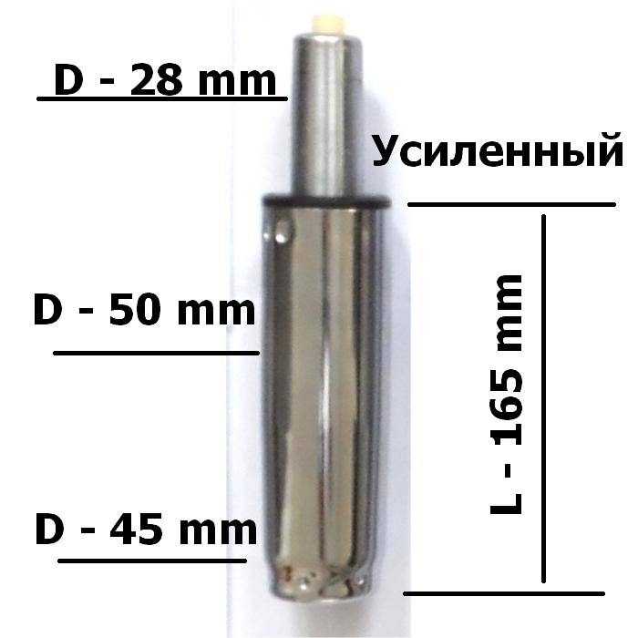 Из подобранных вариантов выберите газлифт нужного класса прочности. Если на кресле сидит ребенок или взрослый до 80 кг, можно купить газлифт прочностью до 120 кг. Если вес сидячего превышает 80 кг мы рекомендуем брать усиленный газлифт. Следует учитывать, если газлифт выдерживает до 120 кг, это не означает то, что на нем может сидеть человек весом в 120 кг. Есть еще вес кресла. Когда вы садитесь на кресло, нагрузка может превышать ваш вес. К тому же максимально допустимая нагрузка на газлифт определяется при правильном расположении нагрузки. Если нагрузка располагается под углом, газлифт быстрее выйдет из строя.